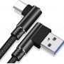 DrPhone D9 Type-C USB-C Dubbele 90° Haakse Nylon Gevlochten 3A kabel – 1 Meter -Datasynchronisatie & Snel opladen – Zwart