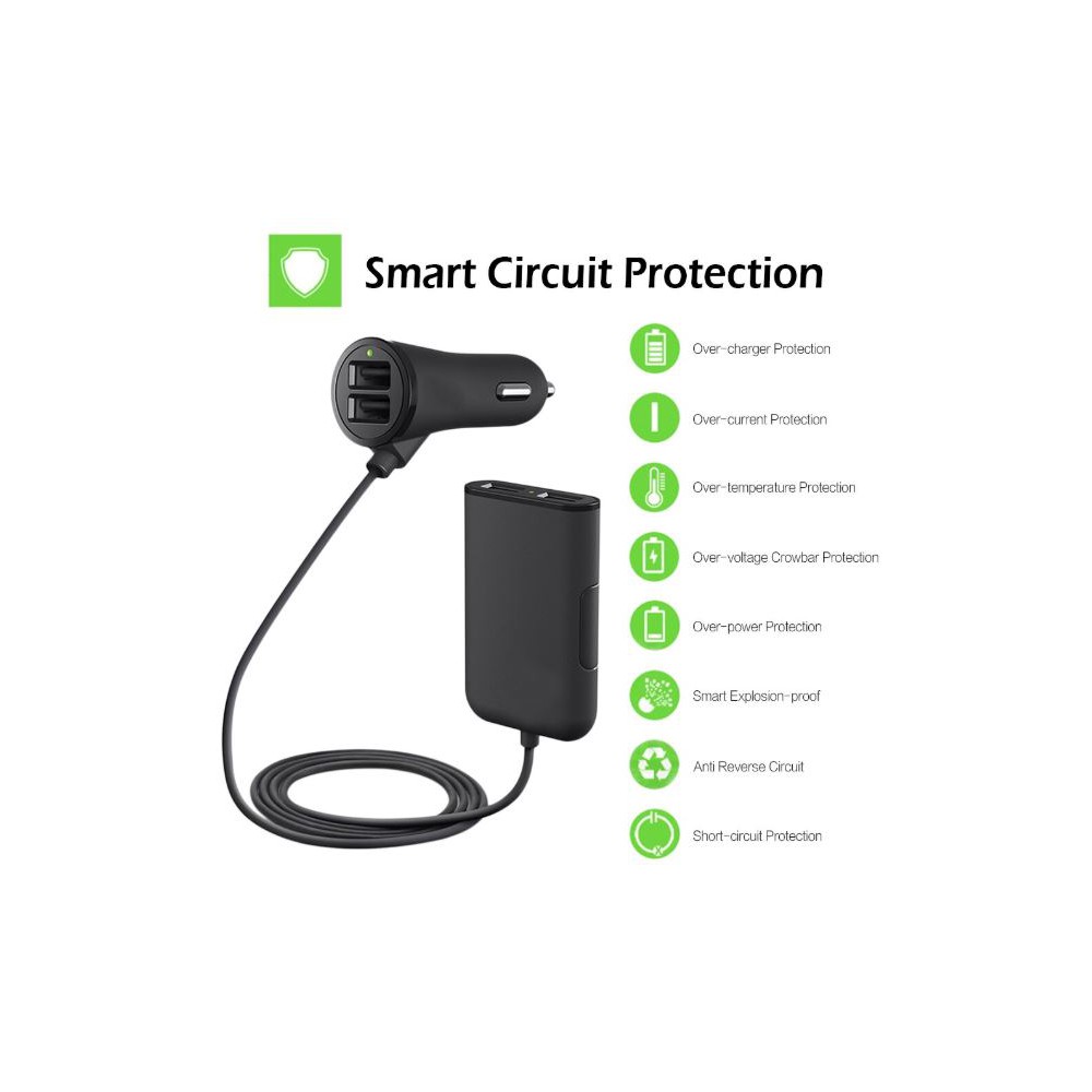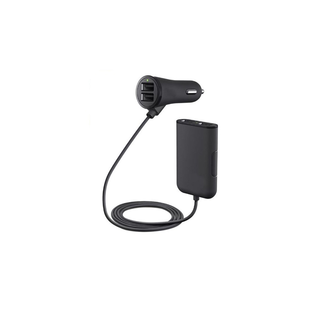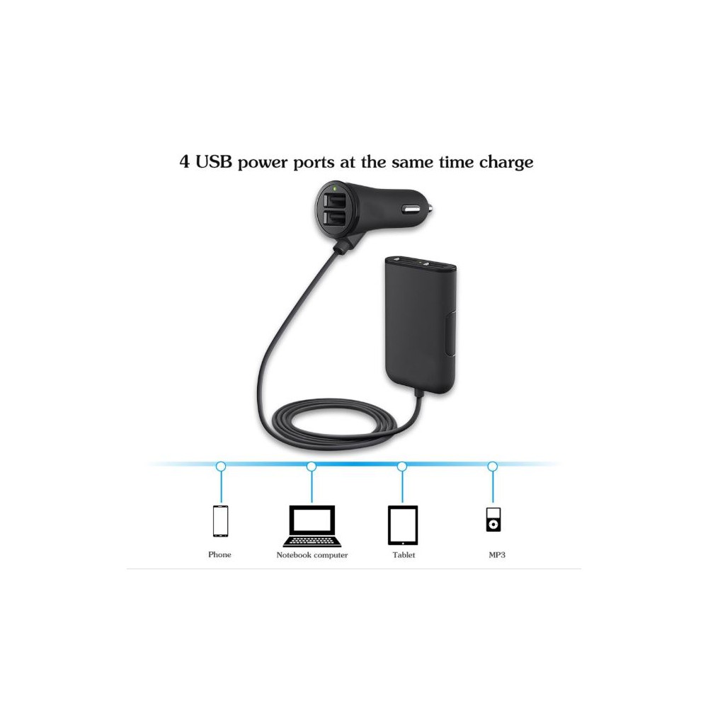 De autolader heeft vier ingebouwde USB-poorten, wat betekent dat maximaal vier mensen hun apparaten tegelijk kunnen opladen. Passagiers op de achterbank hebben gemakkelijk toegang tot oplaadpoorten dankzij een 1,8 meter lange verbindingskabel.