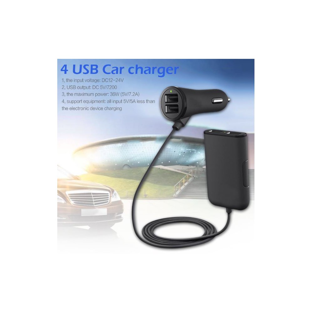 DrPhone PCC1 Auto & Vrachtwagen 12-24V lader 36W 7.2A met 4 USB-poorten voor opladen - voor- en achterbank - 2 USB poorten voor & 2 Achter - Zwart