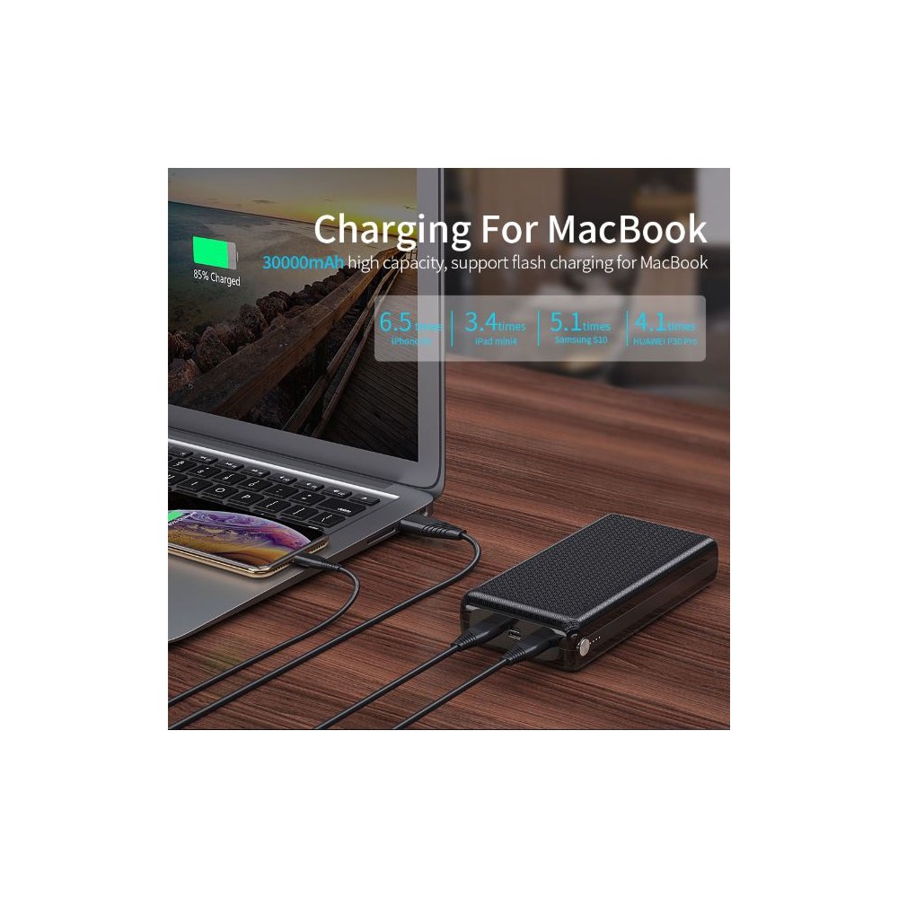 DrPhone PW3 Powerbank 30.000mAh – Snel Opladen Qualcom 3.0 - PD 3.0 USB C Power Delivery- 18W - Draagbare Externe batterij Oplader - Zwart