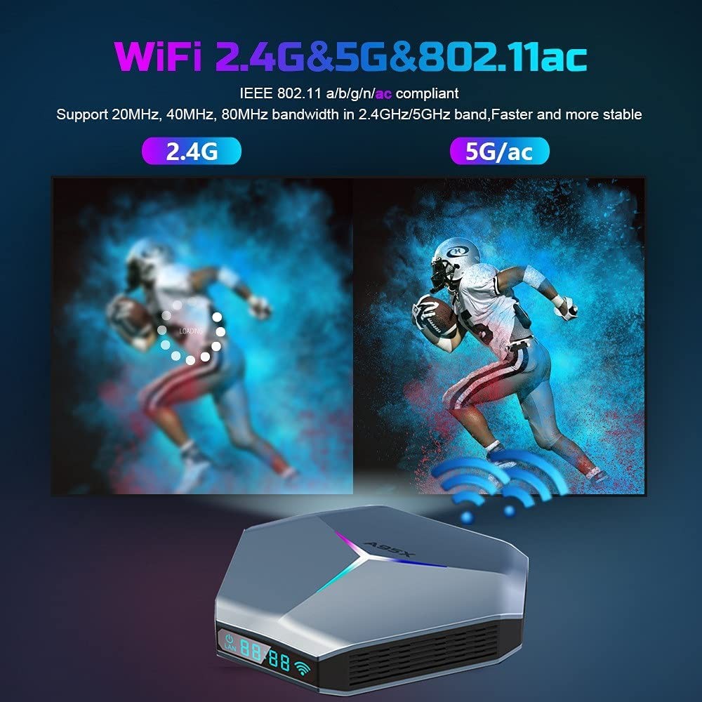 De nieuwste Amlogic S905X4 CPU: De Android TV Box aangedreven door de professionele Amlogic S905X4 Quad-Core Corte-A55 CPU, met G31 GPU gericht op het maximaliseren van de verwerkingsefficiëntie. Hogere configuratie Android 11.0 tv-box biedt ultrasnelle loopsnelheid en professionele beeldverwerkingscapaciteit.