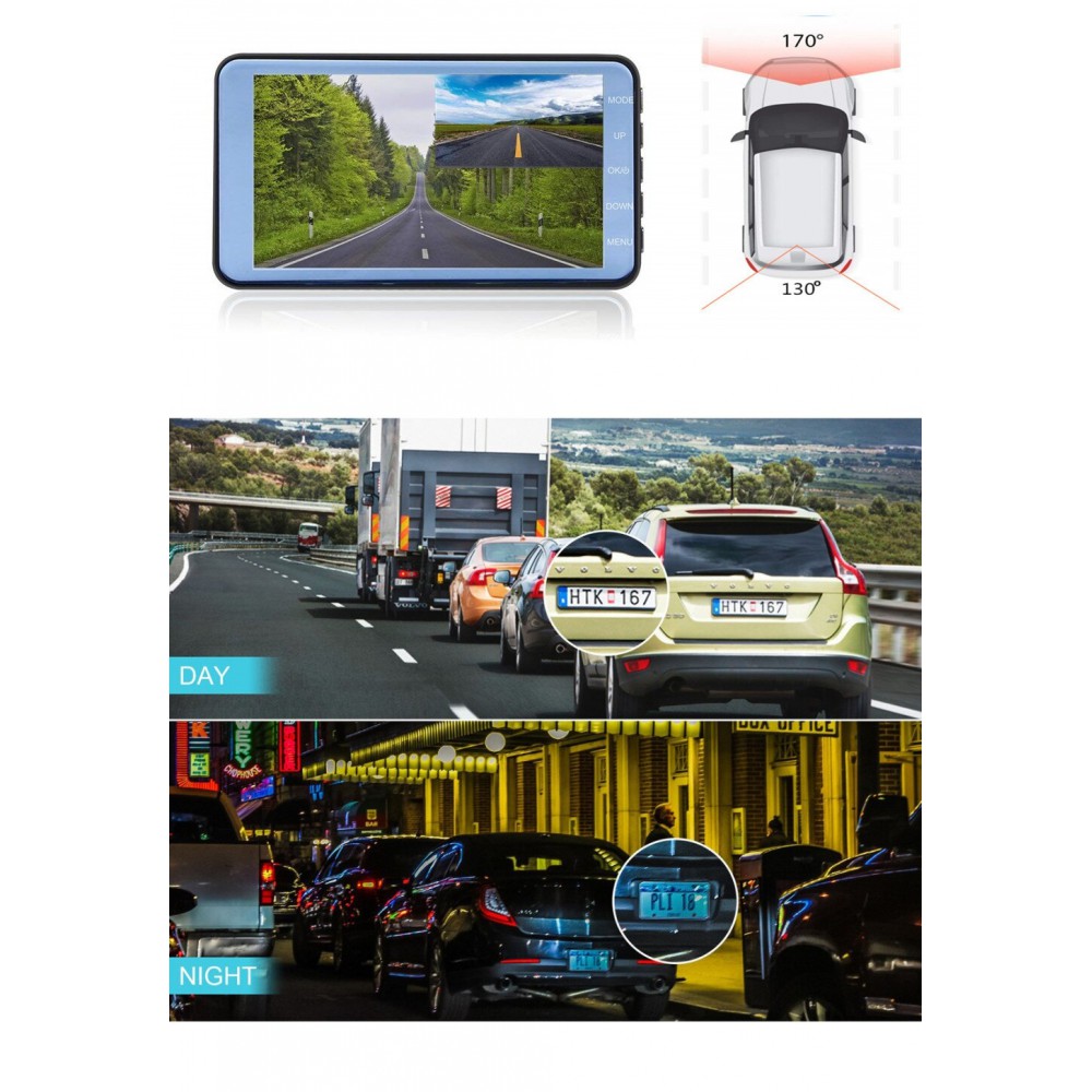 DrPhone DUOCAM-HD - Dashcam + 32GB Micro SD Kaart Full HD 1080P 4 Inch IPS DVR - Auto Camera Lens Nachtzicht - Parkeer Monitor