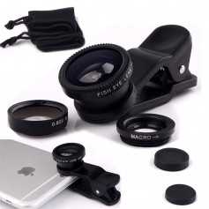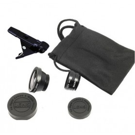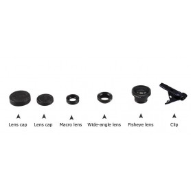 DrPhone PiX Series 3 in 1 Lens inclusief Soft Pouch: Met deze compacte fish eye lens kun je leuke, creatieve en surrealistische foto's maken met een beeldhoek van 180 graden. Met de macro lens kun je microscopische foto's maken en met de groothoek lens krijg je een bredere beeldhoek waardoor je meer op een foto krijgt. Je ontvangt ook een zwarte pouch waar alle benodige lenzen in zitten.