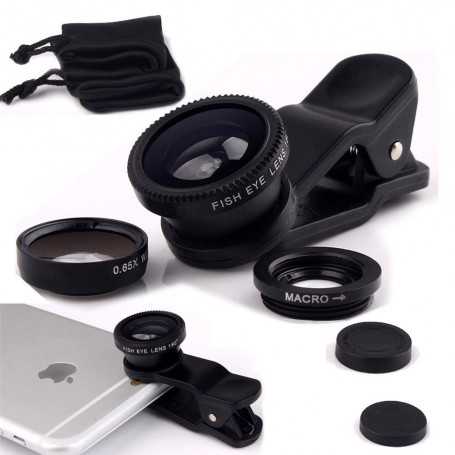 DrPhone PiX - 180° Lens Universele Premium 3 in 1 Fish Eye Lens - Macro Lens / Wide Lens / Fish Eye lens Kit - Zwart