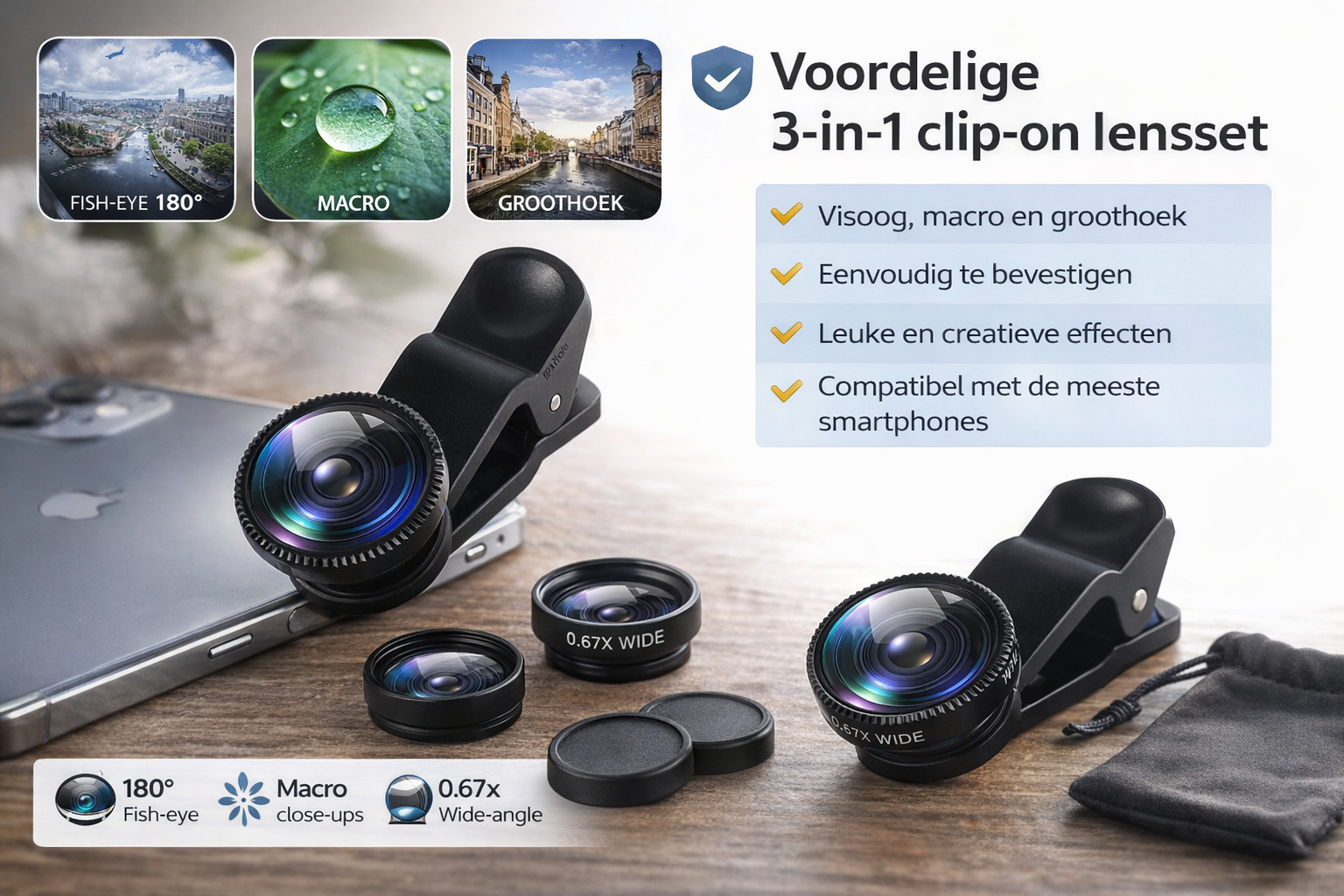 Upgrade de camera van je telefoon en schiet mooiere en creatievere foto's met deze lenzenset.