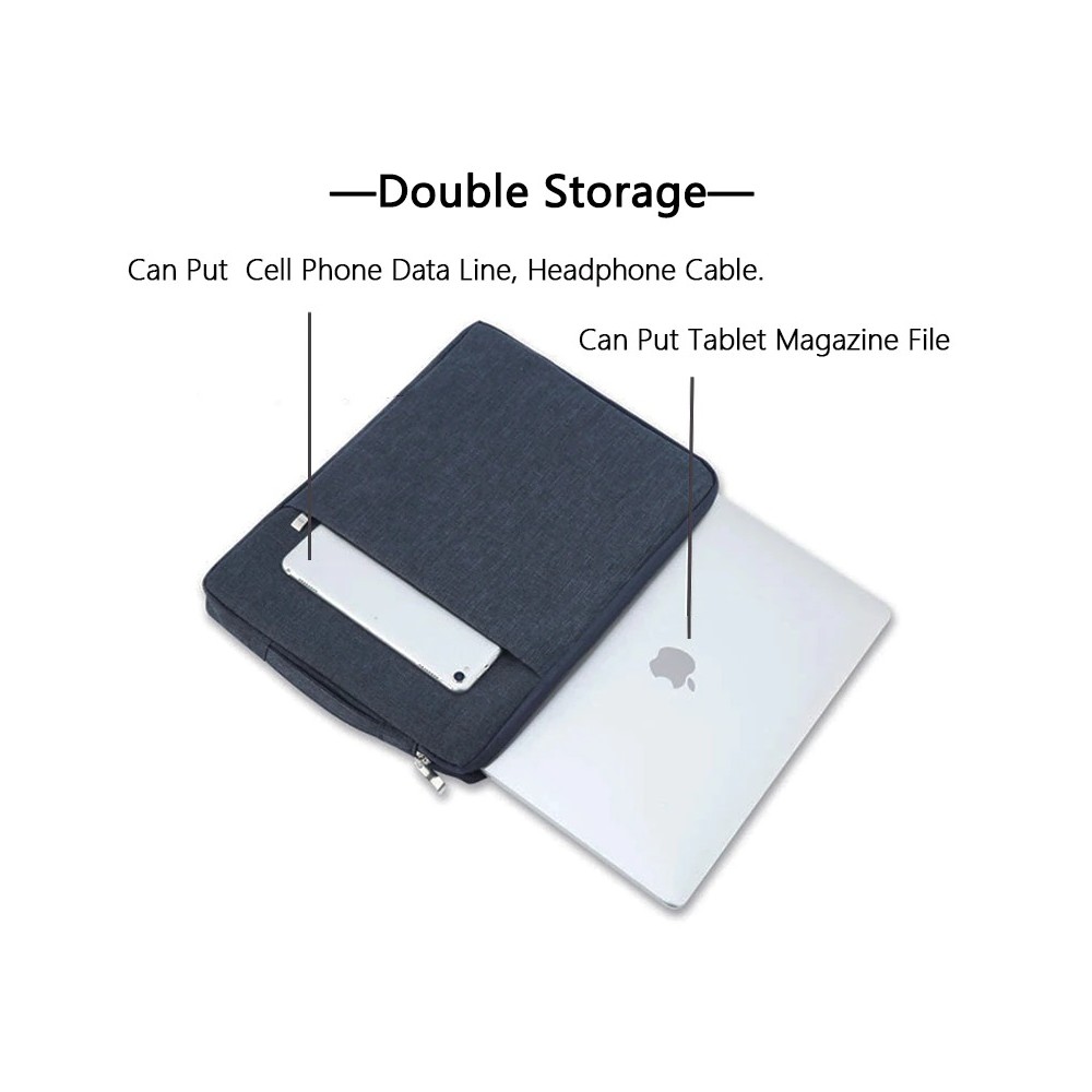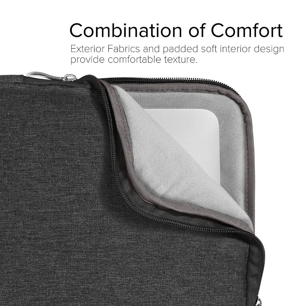 Extra zak en soepele ritssluiting: Extra zak aan de voorkant biedt voldoende ruimte om oortelefoons, pennen, mobiele telefoon en andere accessoires te bewaren. Ritsen aan de bovenzijde op de mouw glijden soepel en gemakkelijk toegang tot uw tablet.