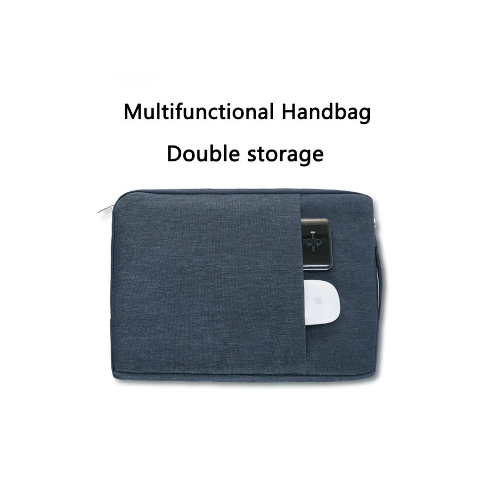Extra zak en soepele ritssluiting: Extra zak aan de voorkant biedt voldoende ruimte om oortelefoons, pennen, mobiele telefoon en andere accessoires te bewaren. Ritsen aan de bovenzijde op de mouw glijden soepel en gemakkelijk toegang tot uw tablet.