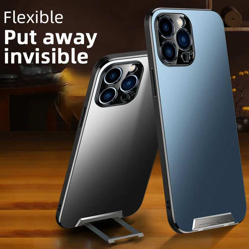 Case - Onzichtbare Standhouder - Matte Backcover - Camera Bescherming - Compatibel Met Iphone 13 Pro Max - Zwart