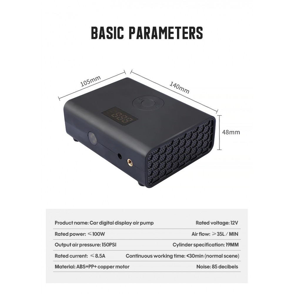 DrPhone AirPro3 Smart Mini Auto Luchtpomp - DC12V- 100W – 150PSI - Elektrische Luchtcompressor met Digitale Display & LED-zaklamp