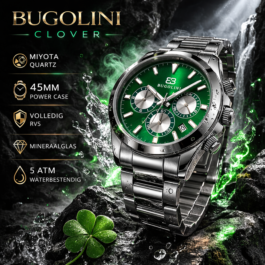 BUGOLINI Clover - 45mm Roest Vrij Stalen Horloge – Chrono - MIYOTA Quartz Uurwerk – Waterdicht