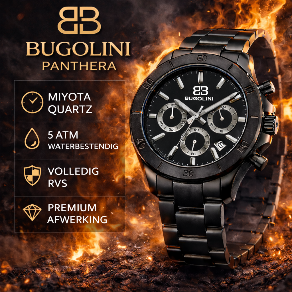 BUGOLINI Panthera - Quartz MIYOTA Horloge | Zwart | 5 ATM Waterbestendig